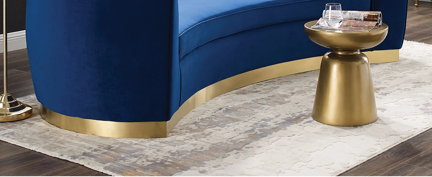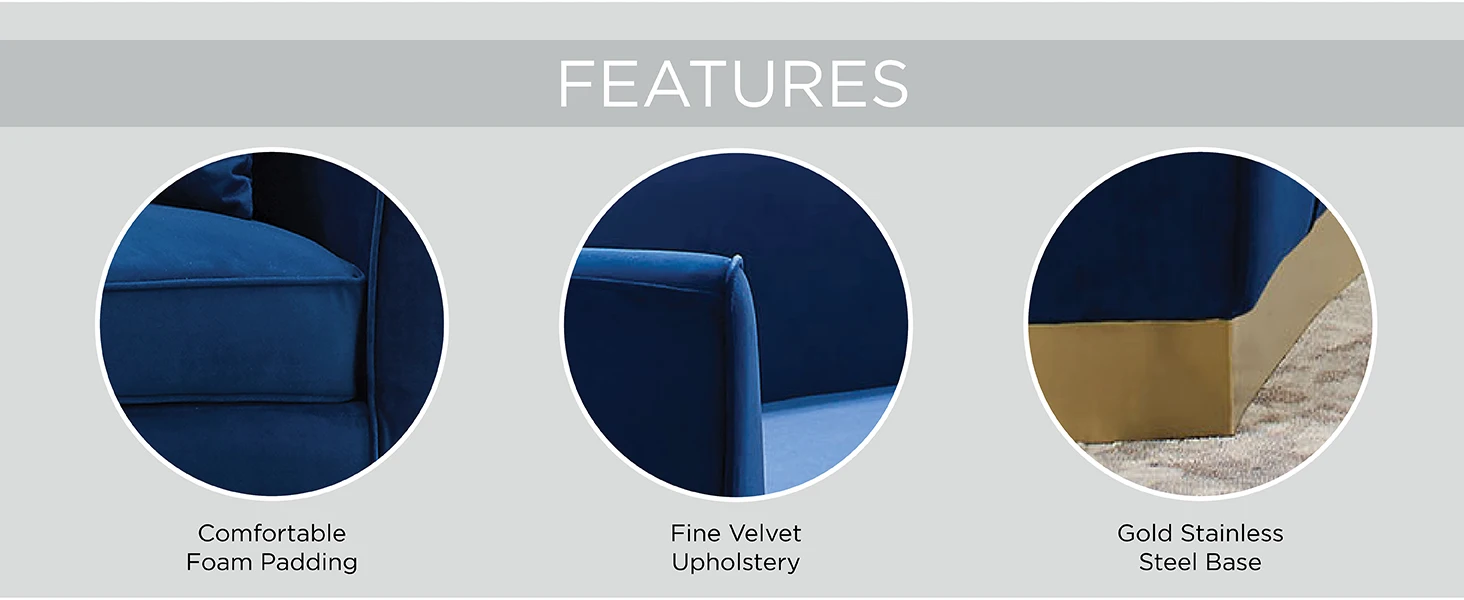 STURDY CONSTRUCTION - Embodying mid-century sophistication with beautiful detail and retro charm, this velvet sofa's palatial accents and premium comfort rest securely on a gold stainless steel base