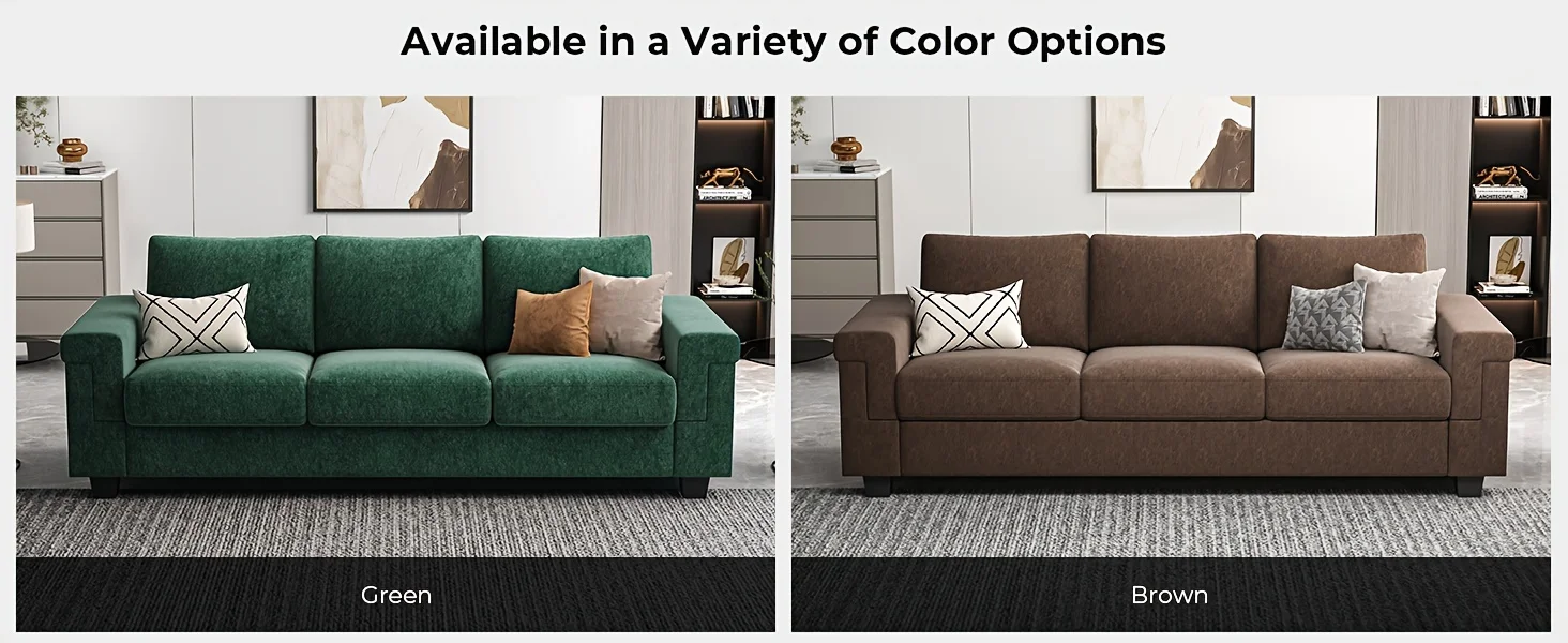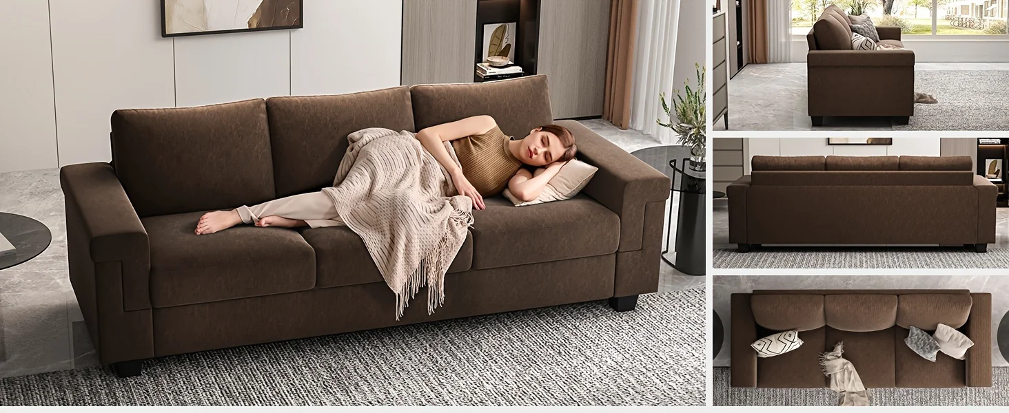 90 Inch Oversiz Sofa And Couch For Living Room Bedroom with Comfortable Arms, 3-Seater Deep Seats BrownApartment Lounge Sofas