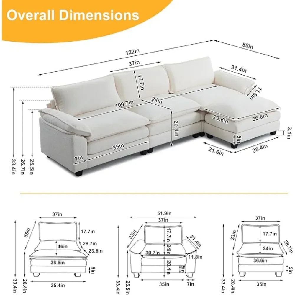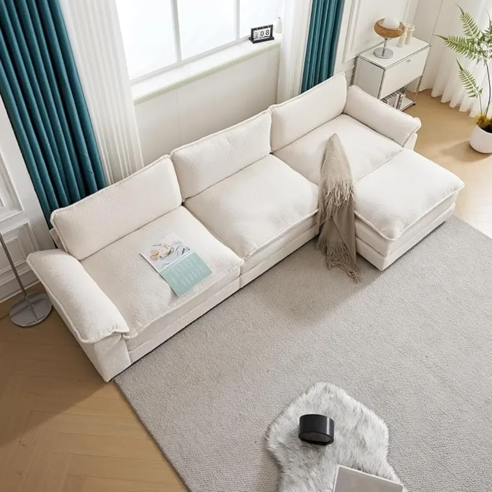 Sectional Sofa Modular Deep Seat Sofas Couch with Ottoman, Teddy Fleece Sofas Sleeper Comfy Upholstered Furniture, Sofa