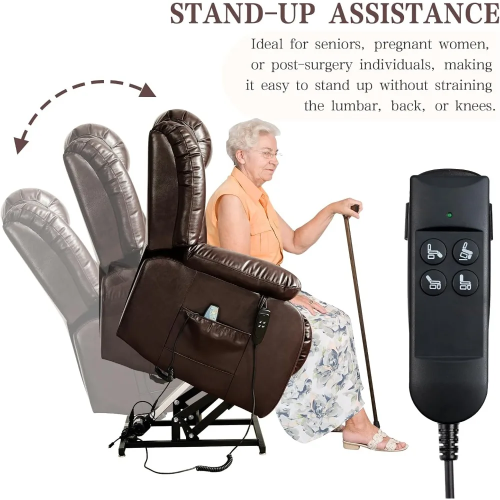 • 【Premium Leather & Comfort Padding】Crafted from soft, breathable, and wear-resistant premium leather, this lift recliner is easy to clean and maintain. The backrest, seat cushion, and armrests are filled with high-density foam to provide ultimate comfort and support. This ensures a relaxed sitting experience, making it an excellent option for those searching for a comfortable recliner chair or leather lift chair